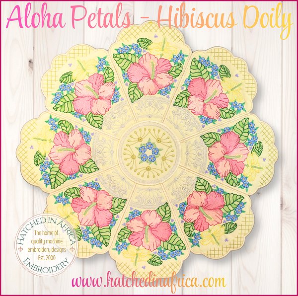 Bring a touch of island charm to your home with our Aloha Petals Hibiscus Doily. This stunning design features soft, flowing hibiscus blooms framed by elegant scalloped panels, creating a timeless doily that feels both tropical and classic.