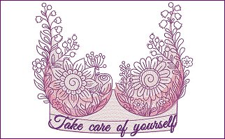 A beautiful floral tribute to strength, self-care, and hope. This elegant embroidery design features delicately detailed blossoms arranged in the shape of a bra, paired with the gentle reminder to take care of yourself.