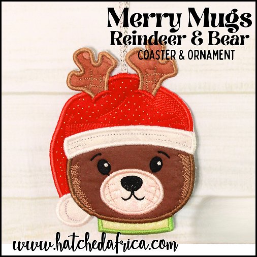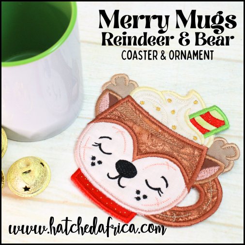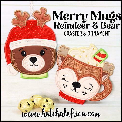 Stitch the sweetest holiday duo with our Reindeer & Bear Merry Mugs. Perfect as ITH coasters or ornaments! These 5x7 designs are quick, cute, and packed with festive charm.Ideal for gifts, table decor, or adding a touch of Christmas magic to your tree.