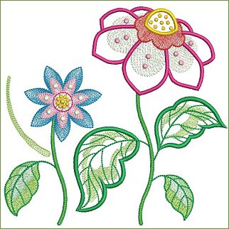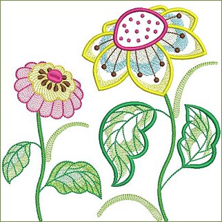 Design Sizes: *10 Floral designs 8x8' *10 Floral designs 6x10' - these have been split into 5x7' for easy multi-hooping * 5 Border designs 6x10' * 1 Border design 5x7' * 10 5x7' elements * 12 6x10' elements * 3 4x4 leaf elements