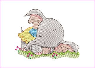 8 Elephant designs with various elements. The set also includes the designs resized 20% larger.