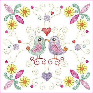 Bring charm and cheer to your next project with our In the Hoop Quilted Tweets collection! Featuring a pair of adorable lovebirds surrounded by flowers and hearts, these designs are perfect for quilts, pillows, wall hangings, and so much more.