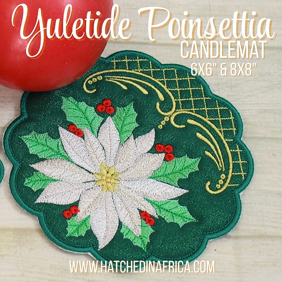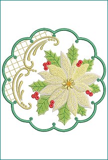 The set includes the candle mat in 8x8 and 6x6. We have also included 2 5x7 poinsettia elements. |