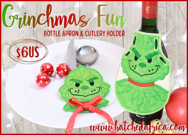 5734 Grinchmas Fun - Bottle Apron and Cutlery holder